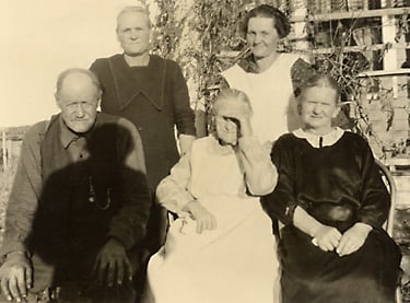 Front row, left is Edward (Ted) Morgan (1843-1928), and next to him his wife Sarah West Morgan (1842-1928).