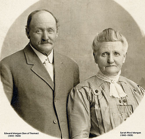 Edward Morgan (1843-1928) was the oldest son of Thomas Morgan and Ann Watkins Morgan. He married Sarah West (1843-1928) in the year 1863 in Goshen, Utah.