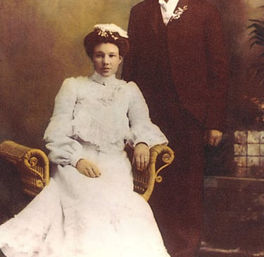 Joseph Charles met Melissa when both families were living in Star Valley, Wyoming. After the Morgan family moved to the Ririe, Idaho area Melissa's mother would bring Melissa to Idaho in a buggy to see Joseph.