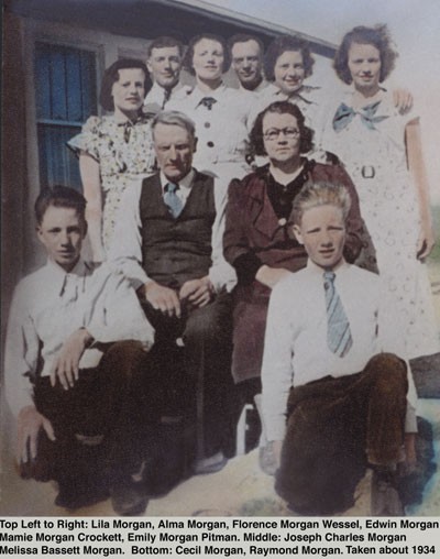 The Joseph Charles and Melissa Bassett Morgan family in about 1934