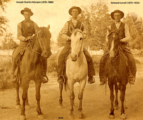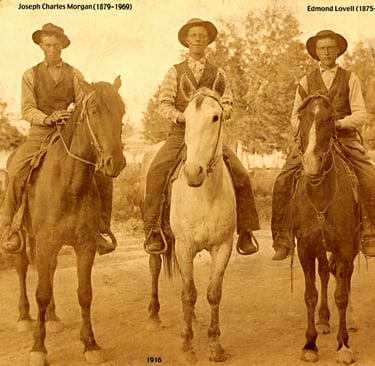 Joseph Charles (Joe) Morgan was born on October 27, 1879, in Oak City, Millard County, Utah, the son of Thomas Morgan and Nancy Jane Radford. During his early childhood he lived in the small community of Leamington in Millard County, located a few miles north of his birth place, Oak City. He lived in an adobe house there that Thomas Morgan built for his second wife Nancy Jane. This house is still standing on it's original site.