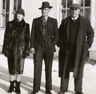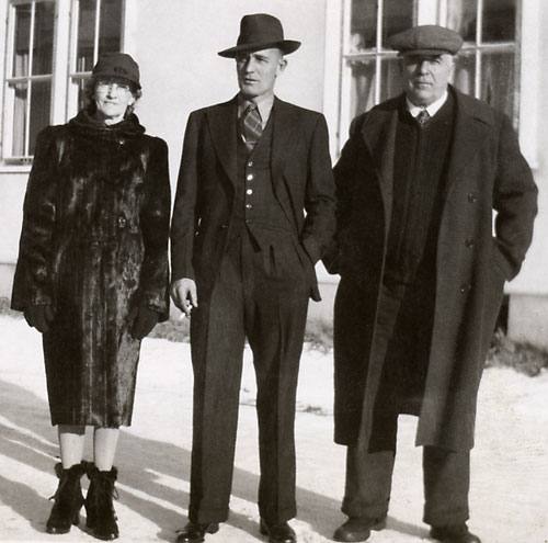 In the picture above are, left to right: Lydia Almeda Morgan Nowlin, their son Fay Charles Nowlin, and George Washington Nowlin. Fay Charles Nowlin was born 17 May 1908 in Claresholm, Alberta, married Madge McConville, and they lived in Banff.