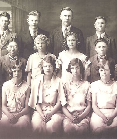 In the picture above are Morgan Eames and his sister Dorothy. Dorothy is in the middle row, third from left. Morgan is in the middle row, fifth from left.