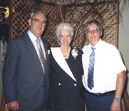 Elaine Eames Nickell is in the center in this picture. On the left is Daryl Nickell and on the right is Lynn Nickell, sons of Leland Jay Nickell and Elaine Eames Nickell. Taken about 1988.