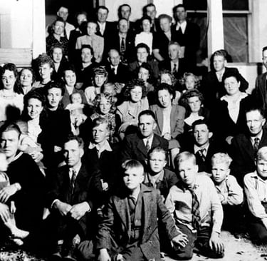 The large group picture below was taken on Orleans front porch (At the Lenard Nield farm near Idaho Falls, Idaho) at the time of Sarah Jane's funeral. Jane (Sarah Jane Holden Morgan Charlesworth) died October 17th, 1944.