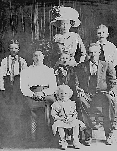 ABOVE...Back Row: Golden (Jack) Morgan (1902-1983), Julia Ann Morgan (1883-1957) and Alvin Elmer Morgan (1899-1970). Middle Row: Sarah Lovina Ross (Holden) Morgan (1863-1919), Kenneth Morgan (1905-1969) and William Thomas Morgan. Front Row: Orlean LoVina Morgan (1907-1997).